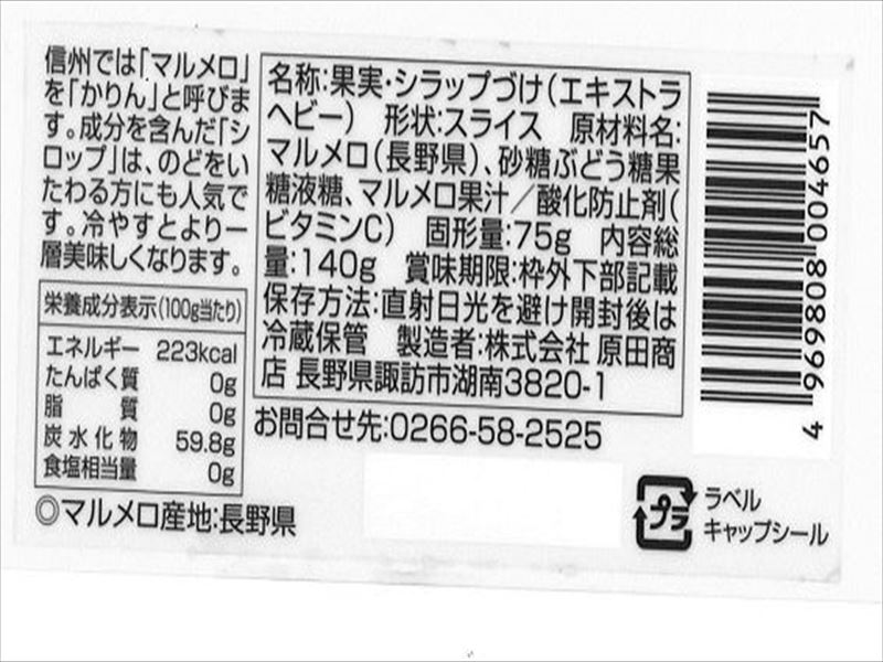 【原材料】マルメロ、砂糖ぶどう糖果糖液糖、マルメロ果汁、ビタミンC