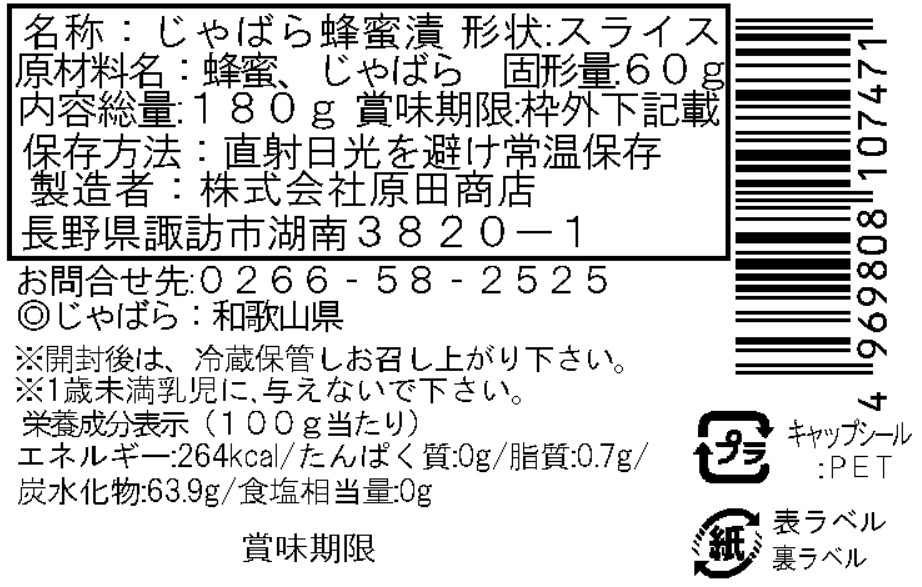 【原材料名】蜂蜜(中国産みかん蜜)、じゃばら(和歌山県産)