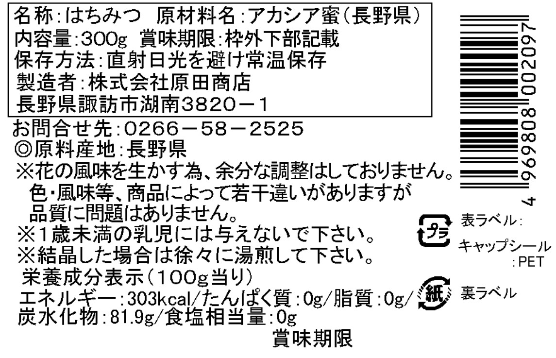厳選されたアカシアの花から採取された100%天然のアカシアはちみつは、優しい香りと蜂蜜特有のクセがないさっぱりとした味わいが特徴で、その圧倒的人気から「はちみつの女王」とも呼ばれ蜂蜜が苦手な方でも美味しく食べられます。またクセがないのでお菓子作りや普段の調理の時には砂糖の代わりにしてもとても美味しいです。どんな料理にも合う蜂蜜ですのでぜひお召し上がりください!当社の蜂蜜で圧倒的人気No.1です!
