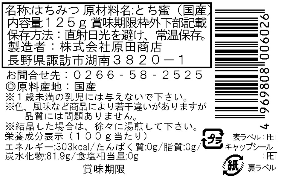 日本本来のトチノキの花から採取される、独特の風味を持つはちみつです。
