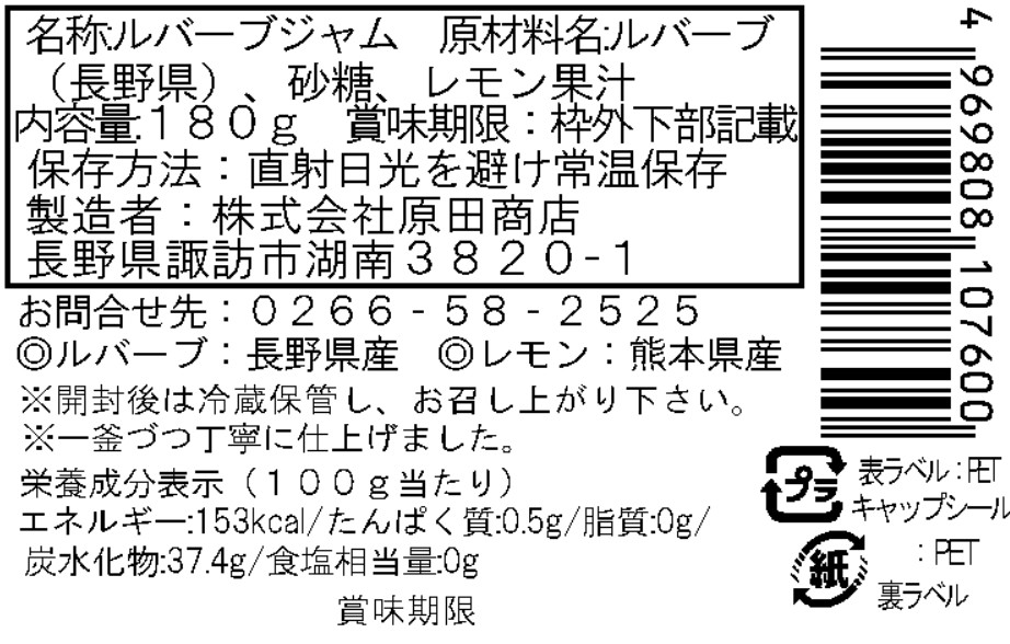 【産地】ルバーブ:長野県、砂糖:国産、れもん果汁:国産