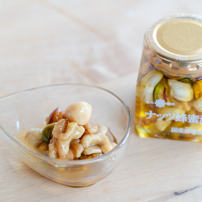 【原材料】蜂蜜(国産)、アーモンド、マカダミアナッツ、カシューナッツ、クルミ